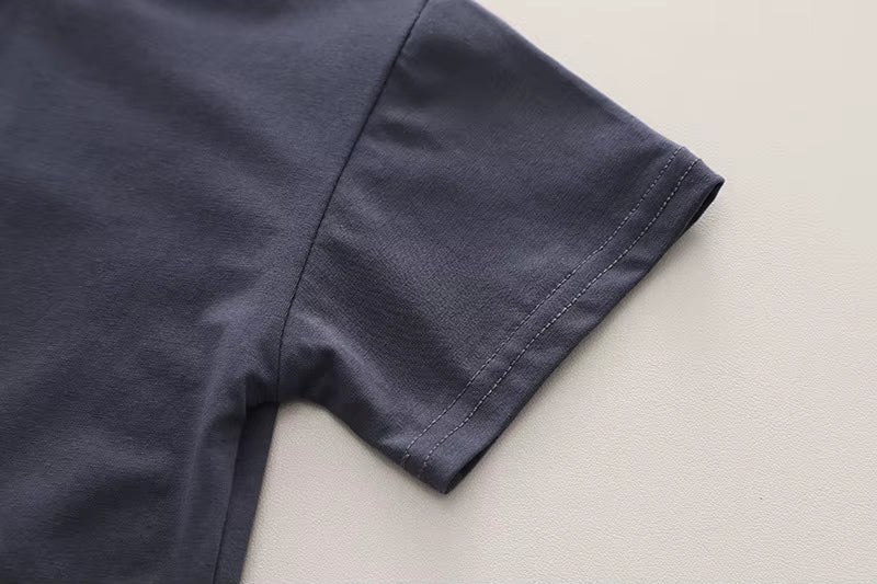Gemaakt van een zachte katoen-polyester mix voelt de stof licht en ademend aan op de huid. De O-hals en korte mouwen zorgen voor extra comfort, terwijl de elastische taille van de shorts een fijne pasvorm biedt en het aan- en uittrekken gemakkelijk maakt.