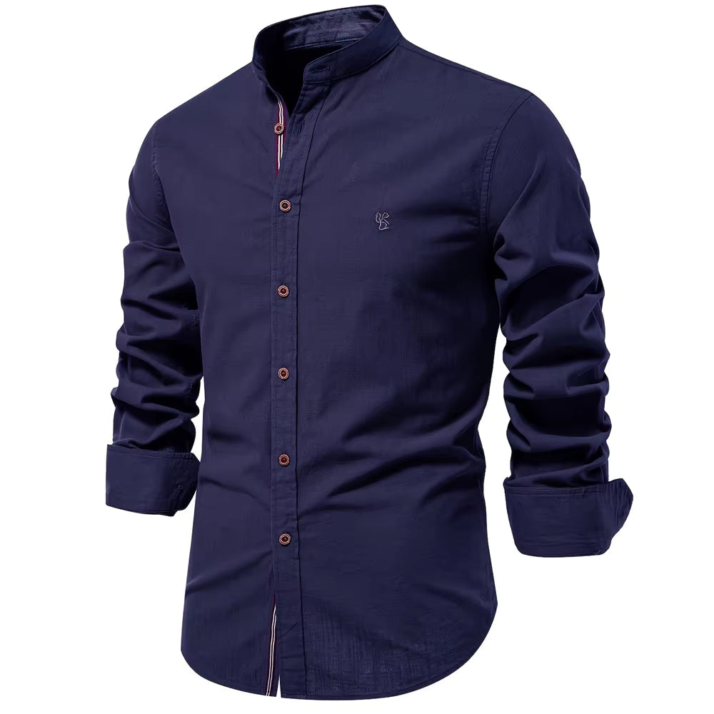 Dit stijlvolle navy herenoverhemd combineert een moderne uitstraling met optimaal draagcomfort. Gemaakt van hoogwaardig katoen (broadcloth), voelt de stof zacht aan op de huid en is het overhemd geschikt om het hele jaar door te dragen.